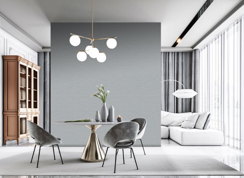 PAPEL TAPIZ GRIS MANCHAS DORADAS