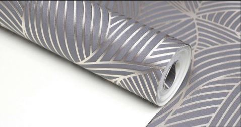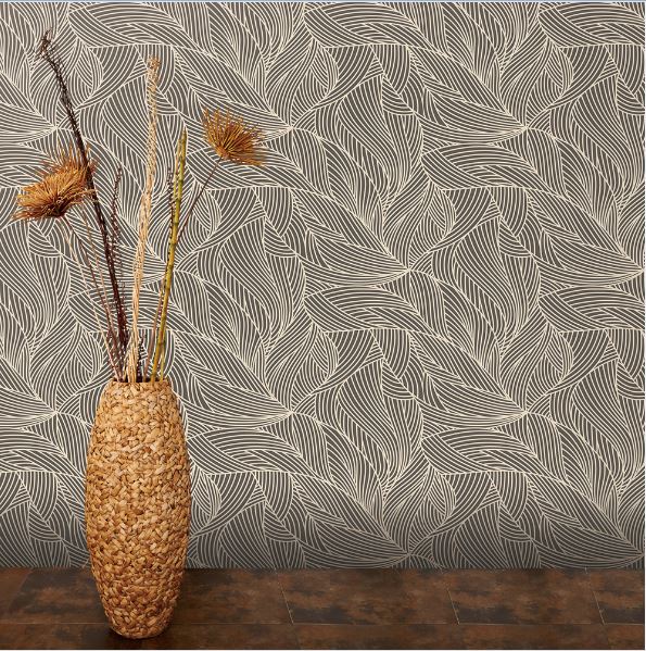 PAPEL TAPIZ METALIZADO HOJAS GRIS